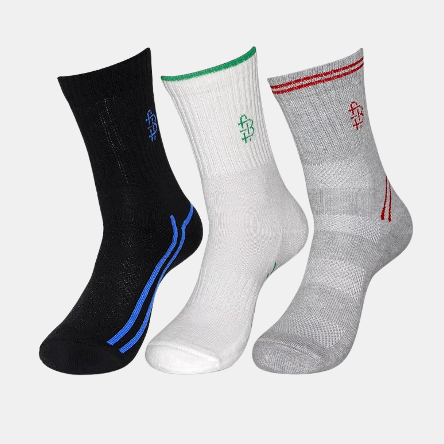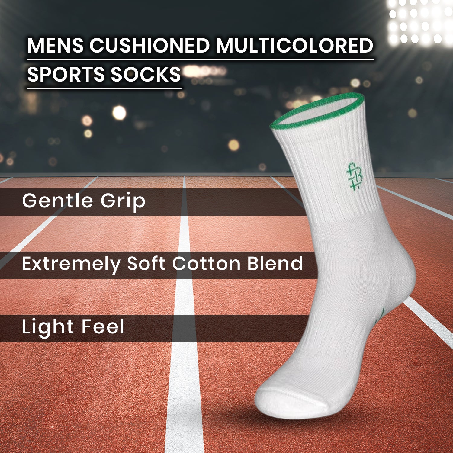 Men's Cushioned Multicolored Sports Crew Length Socks- Pack of 3