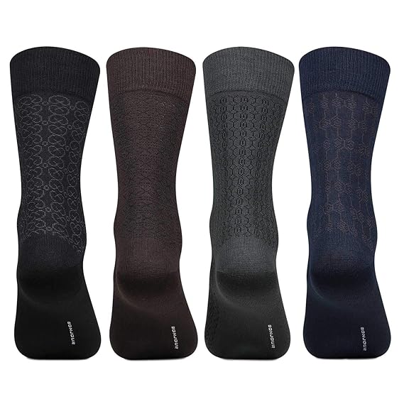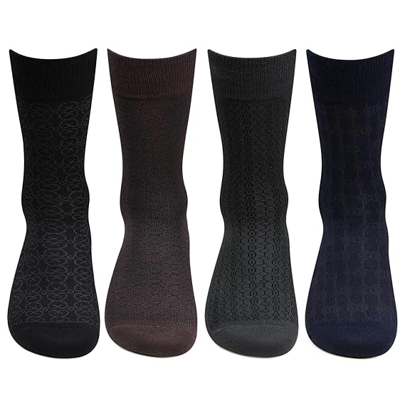 Bonjour Men's Multi-pack Mercerized Self Design Formal Dress socks with a different design, pattern, and colour to fulfil your various needs in one pack. These socks club well to compliment your dressing for any purpose like going out for party picnic, in-office or in the club. This bonjour casual socks are crafted using extremely soft cotton blend fabric. Your feet relax in these super soft designed socks. Socks have a gentle grip and light feel on the skin. So these socks suit well with any pattern shoes.