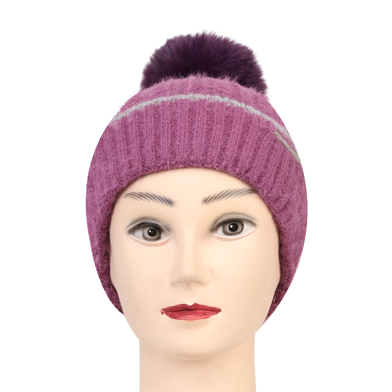 Women & Girls Pom-Pom Knitted Beanie Cap (Mouve)