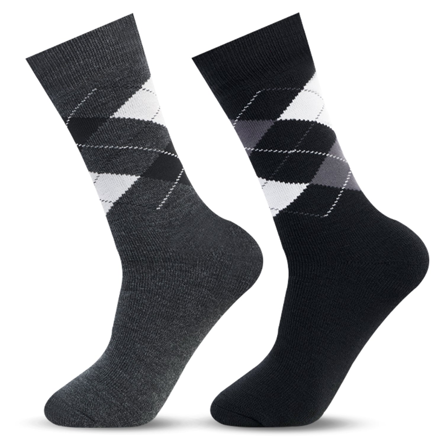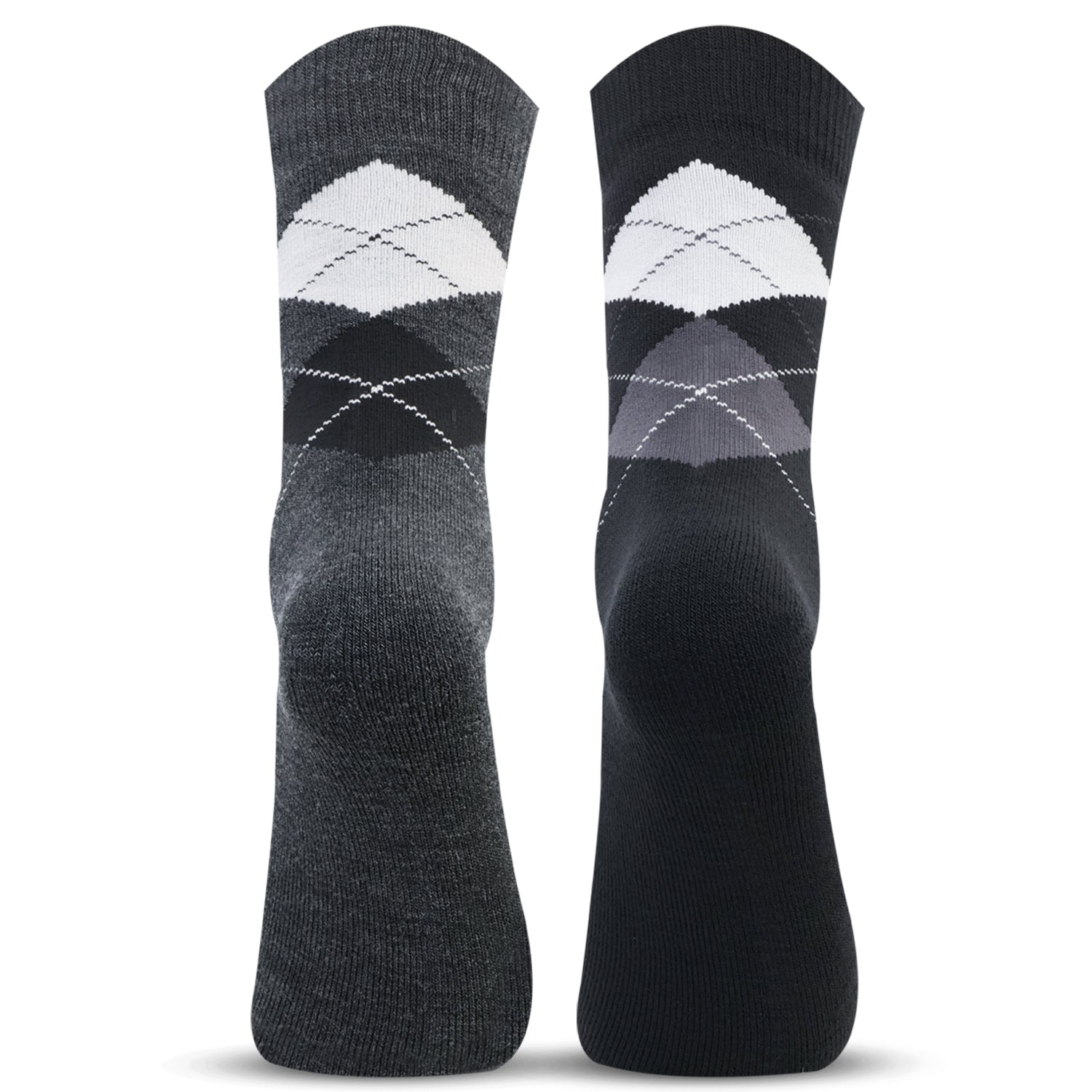 Men Classic Argyle Multicolored Woolen Socks- Pack of 2