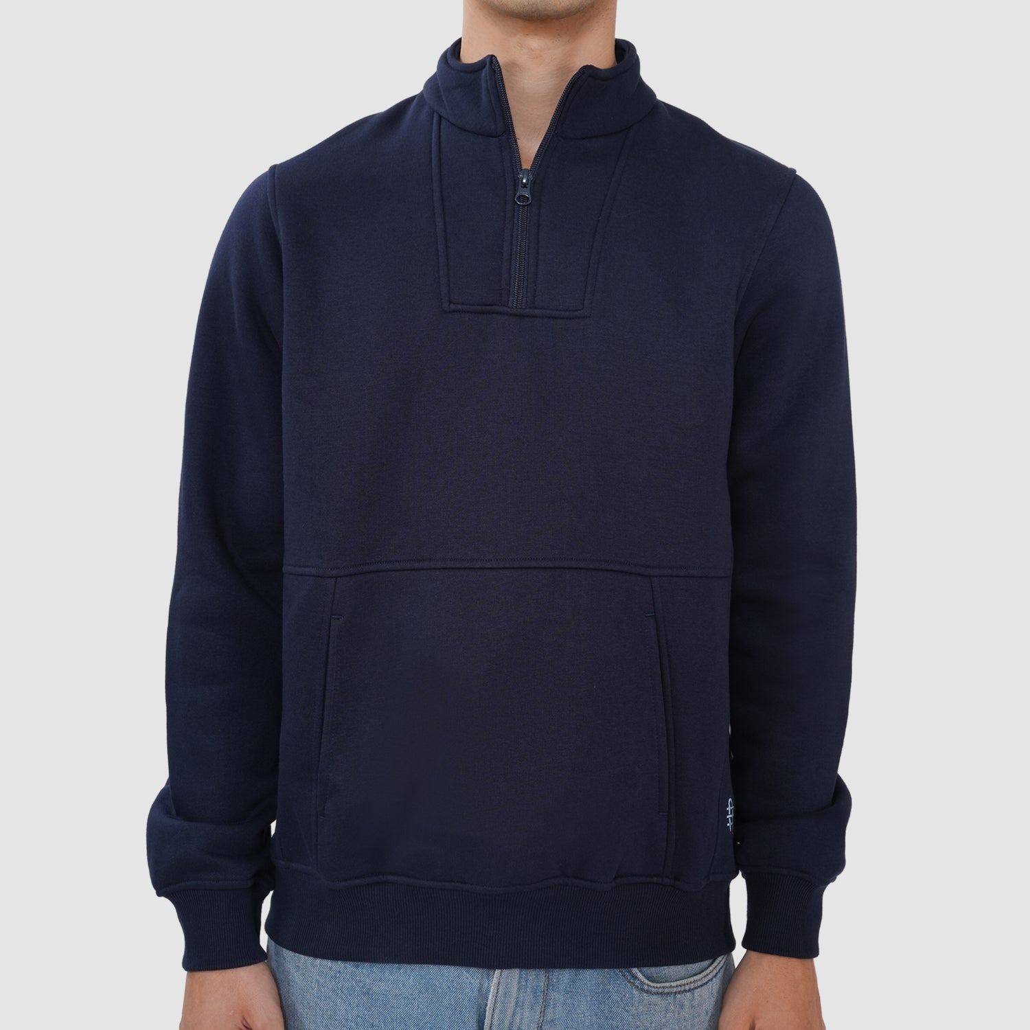 Bonjour Men’s Navy Blue Half Zip Sweatshirt with Kangaroo Pocket