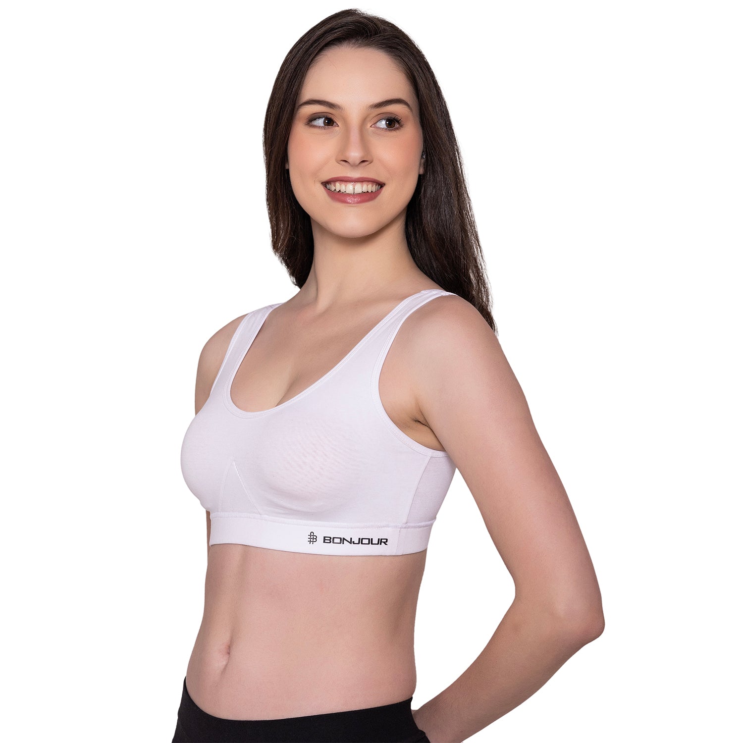 Women's Wirefree Non Padded Full Coverage Sports Bra - White