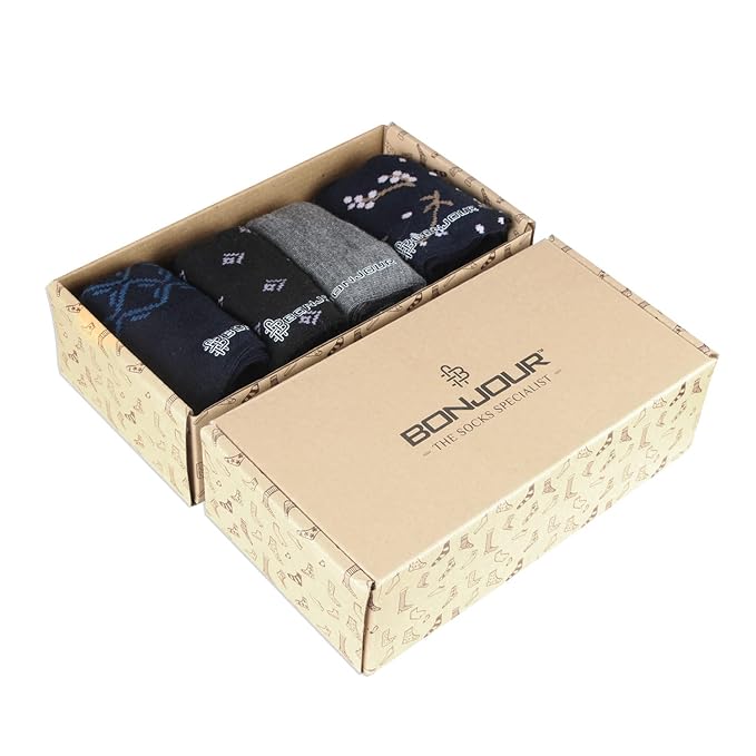 Bonjour brings a classic collection of designer ankle-length woolen socks for your delicate feet to get warm with optimum comfort. It looks classic with any footwear. So Stop worrying much about the cold weather and allow them to go anywhere they wish this winter with these perfect socks. These woolen socks are designed with a soft light fit which gives a smooth feel and is against itching sensations. These designer wool socks have a gentle grip that ensures a secure stable fit.