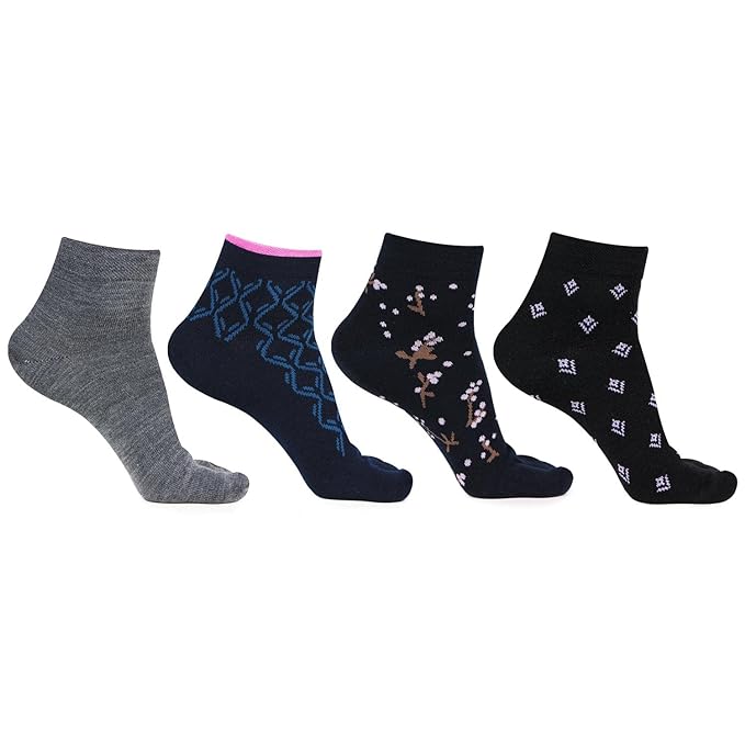 Ladies Woolen Ankle-Length Multi-color Thumb Socks - Pack Of 4