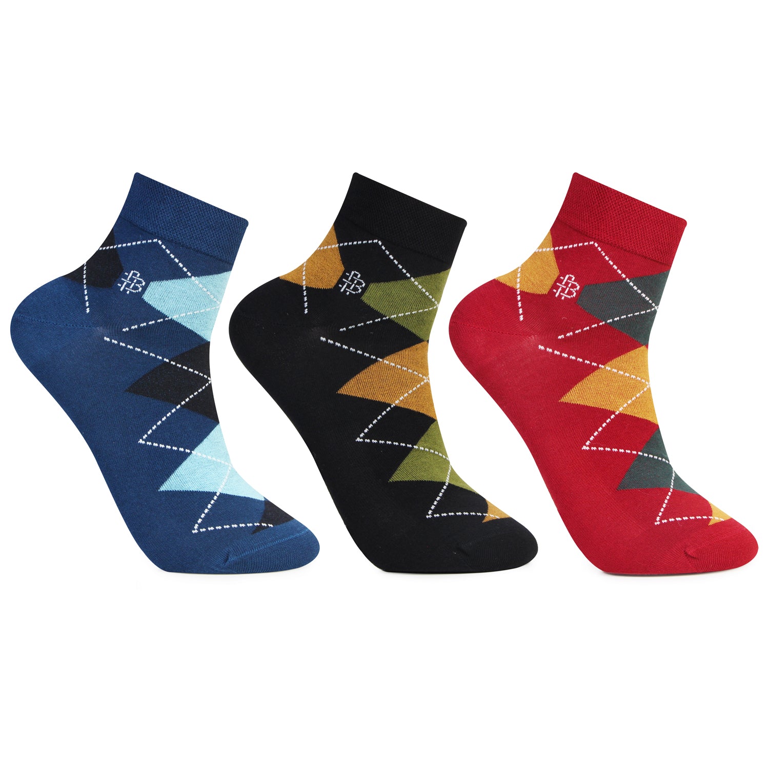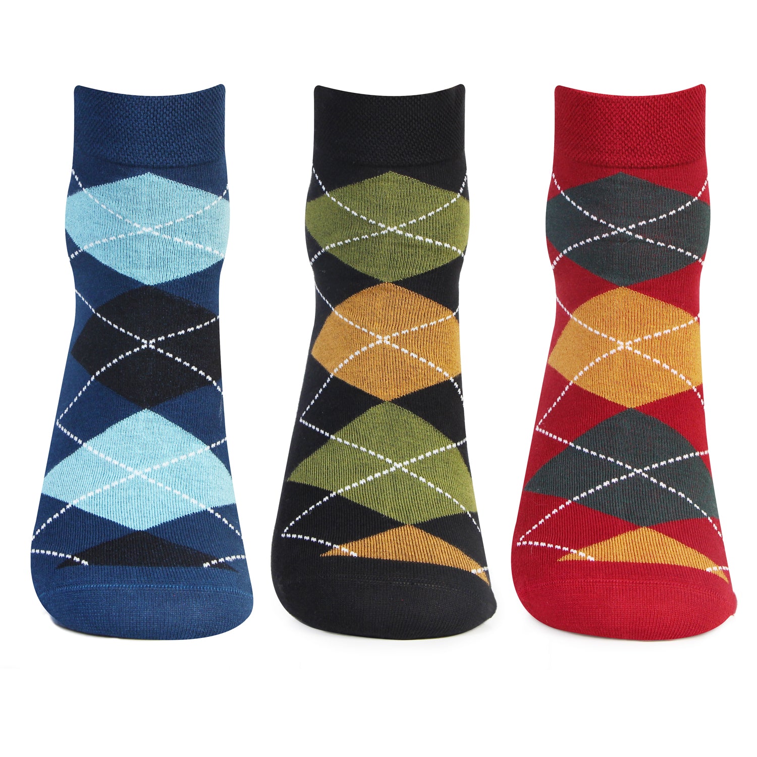 Men Cotton Scottish Collection Ankle Socks - Pack of 3