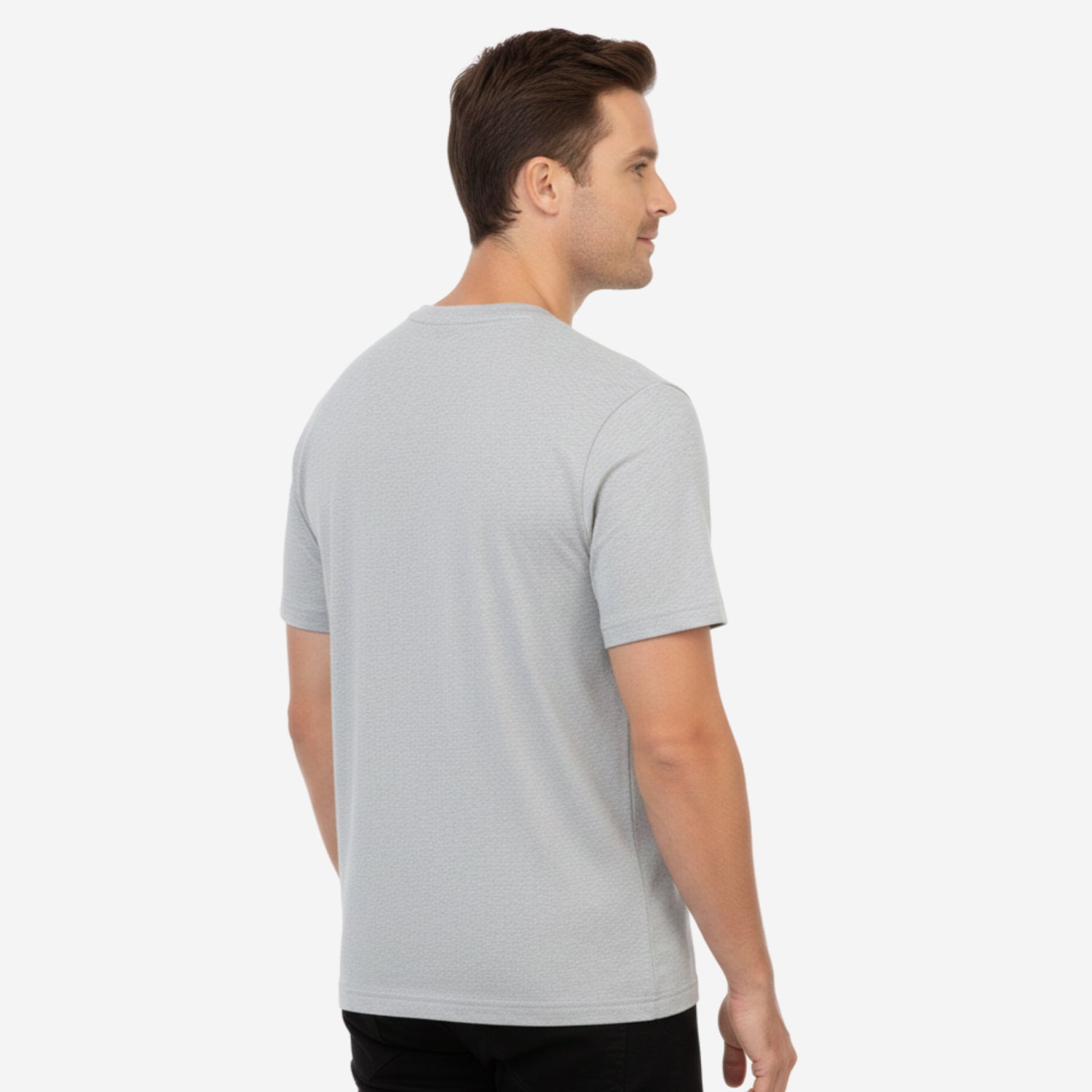Men’s Printed Round‑Neck T‑Shirt (Lt.Grey Mel)
