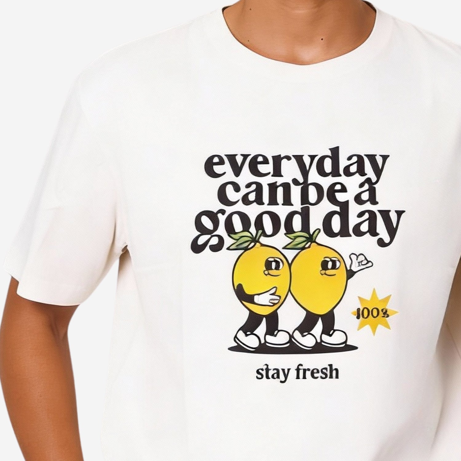 Men’s Printed Round‑Neck T‑Shirt (Off White)