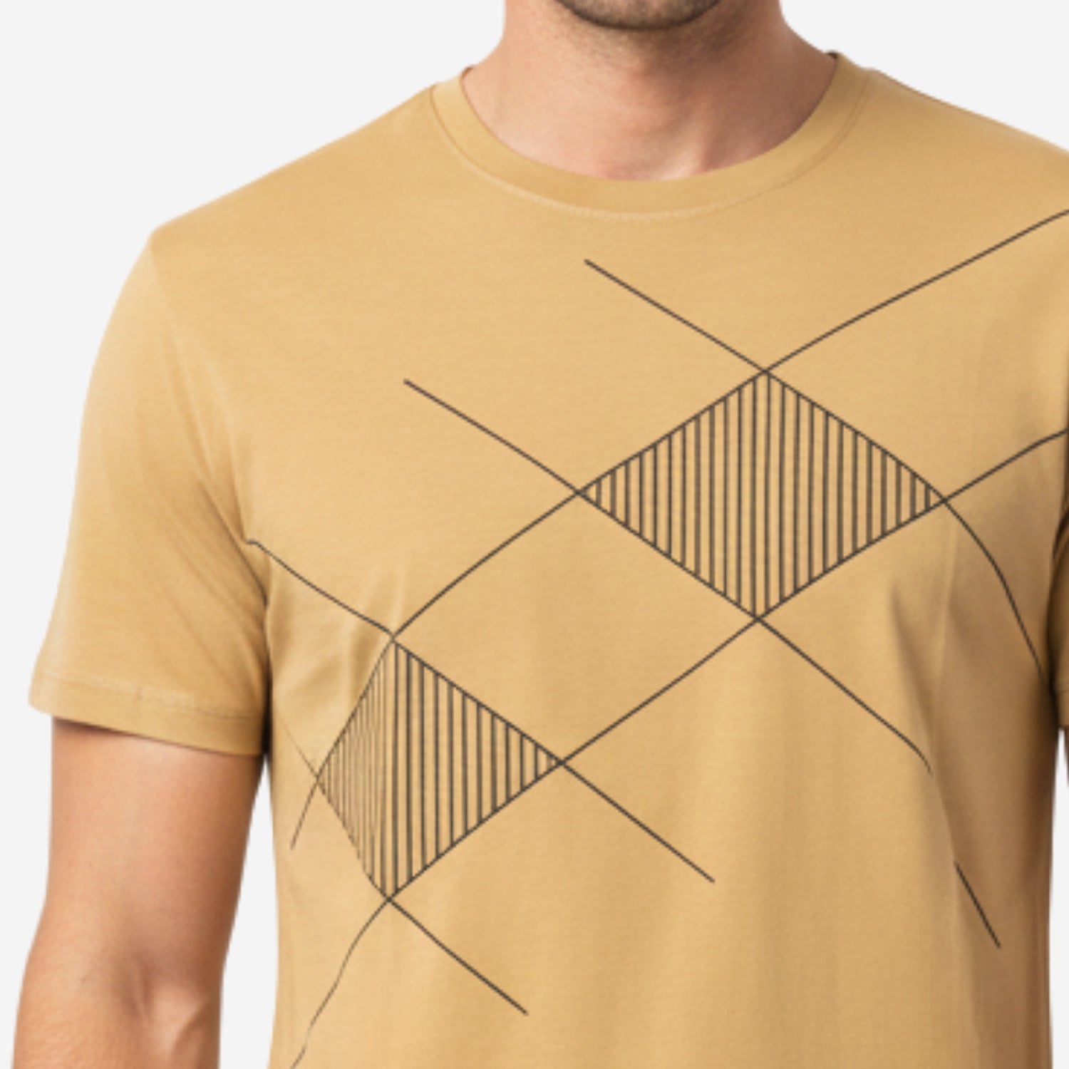 Men’s Printed Round‑Neck T‑Shirt (Warm Gold)