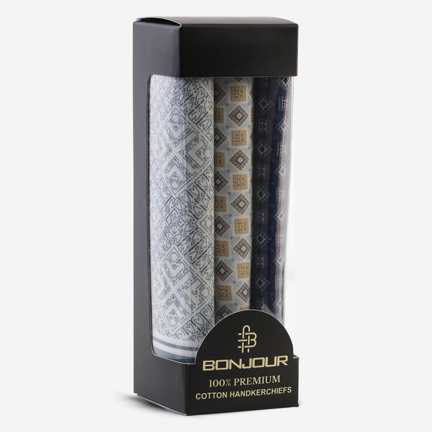 Bonjour Silcora Designer Cotton Handkerchiefs, crafted from soft and breathable cotton, offer a smooth feel and elegant look. The stylish printed patterns add a refined touch, making them perfect for both office and casual use. Designed to blend comfort with sophistication, these handkerchiefs bring class to your everyday essentials. Whether for daily use or gifting, this set adds a hint of luxury and charm that stands out effortlessly a perfect pick for those who value quality and style in every detail.