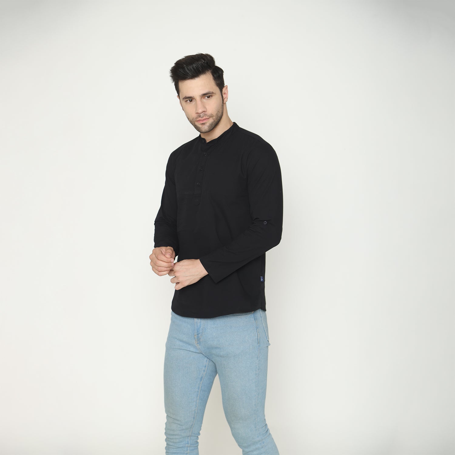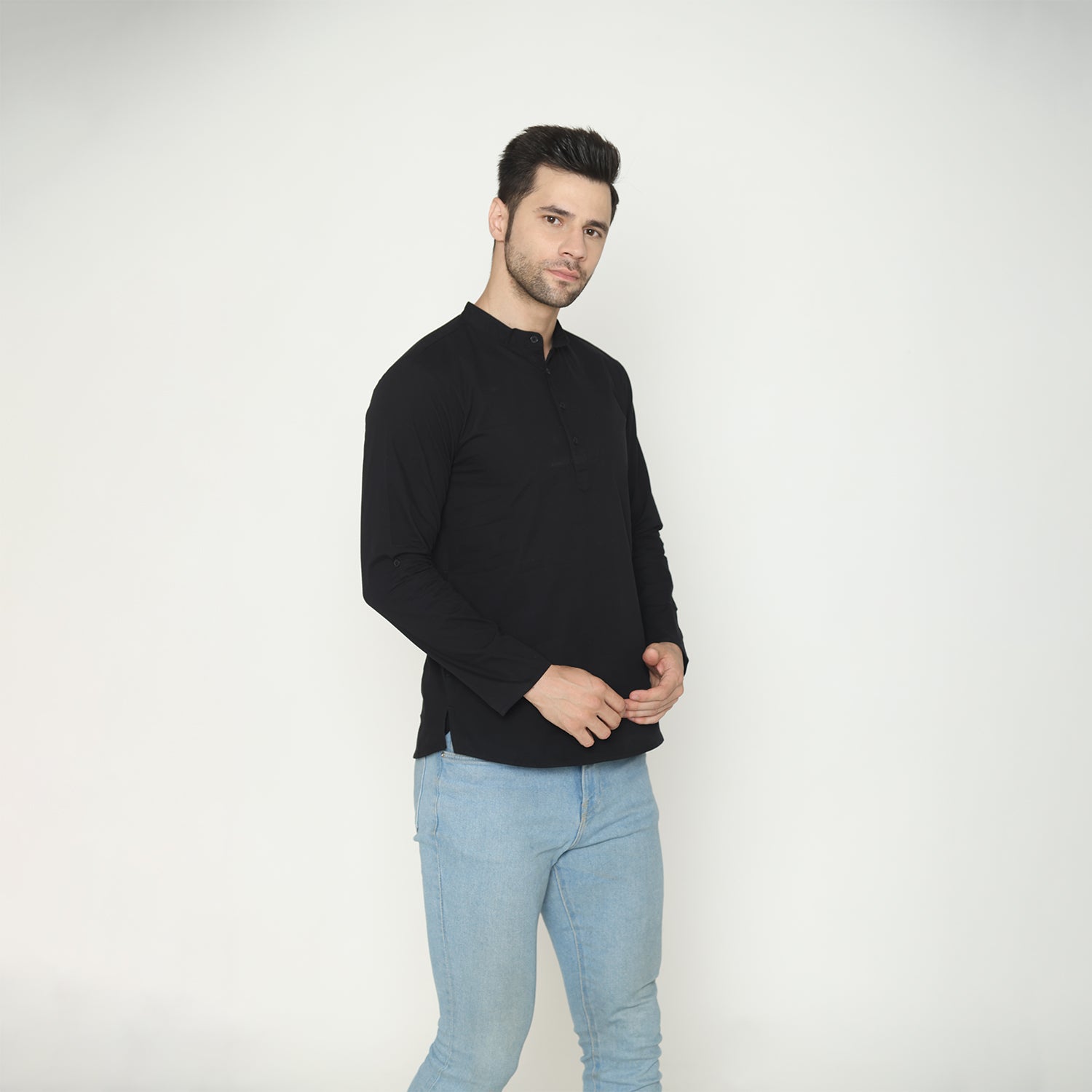Men's Solid Short Kurta - Black