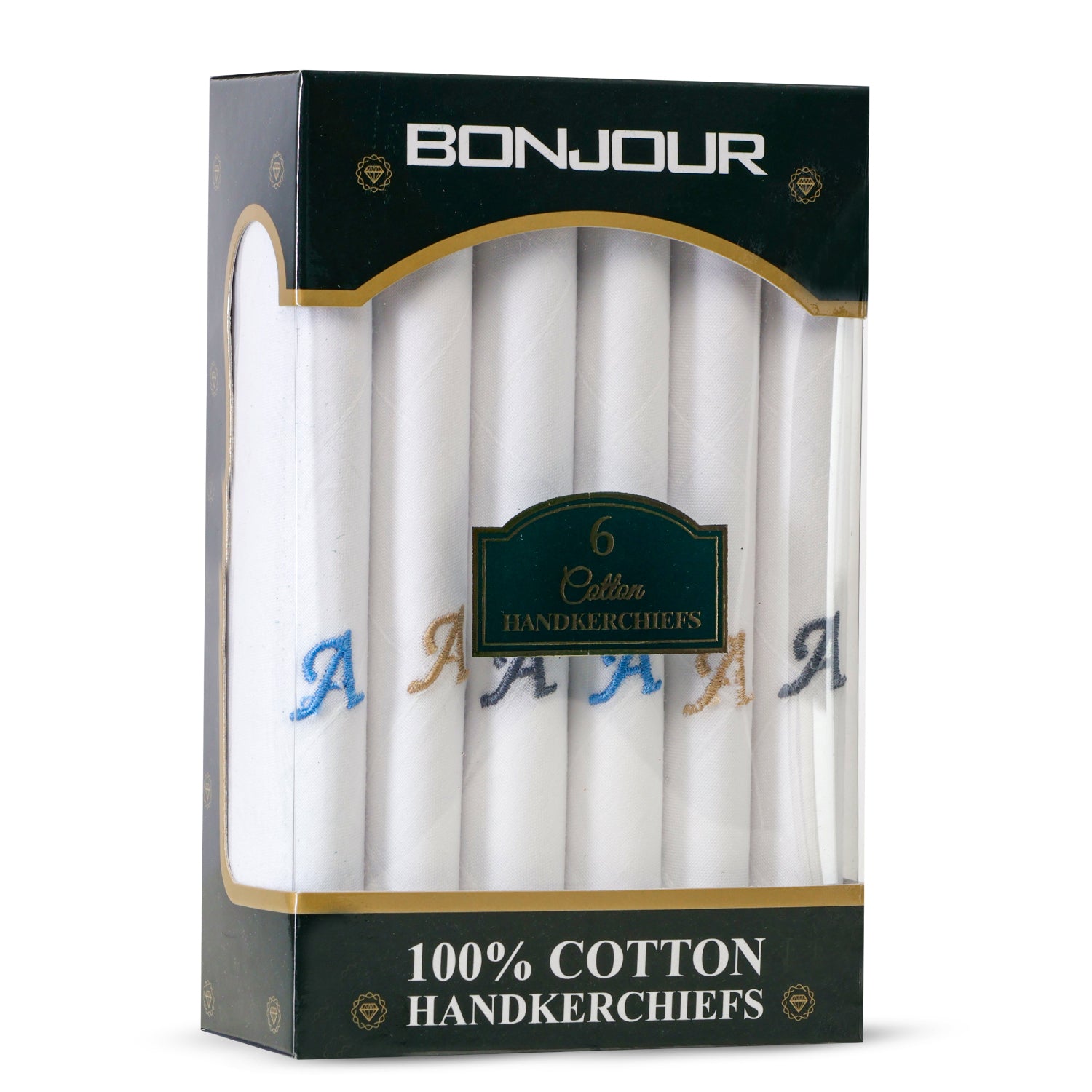 Men's White Cotton Handkerchief With Alphabet A Initial (Pack of 6)