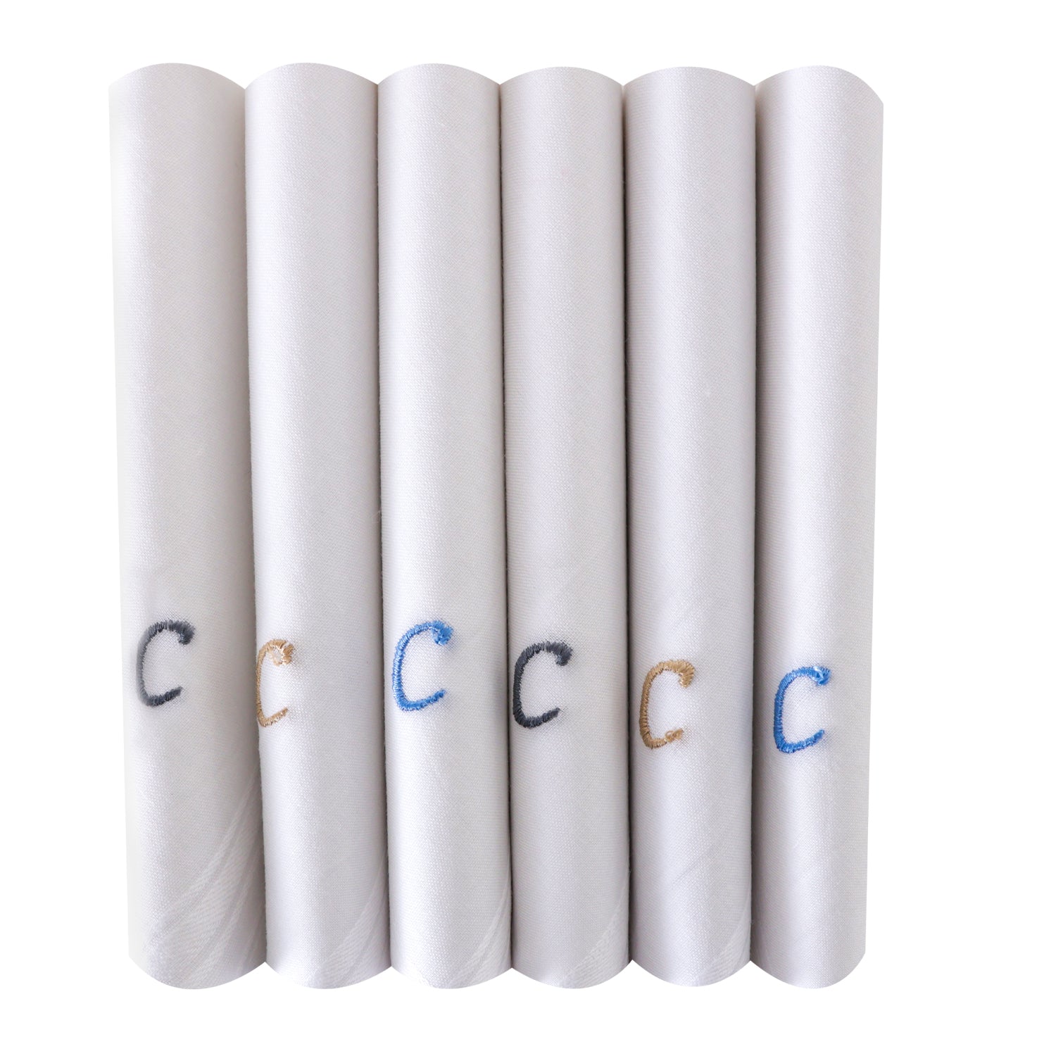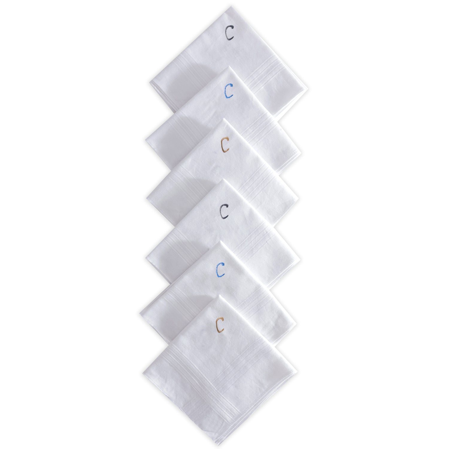 Men's White Cotton Handkerchief With Alphabet C Initial (Pack of 6)