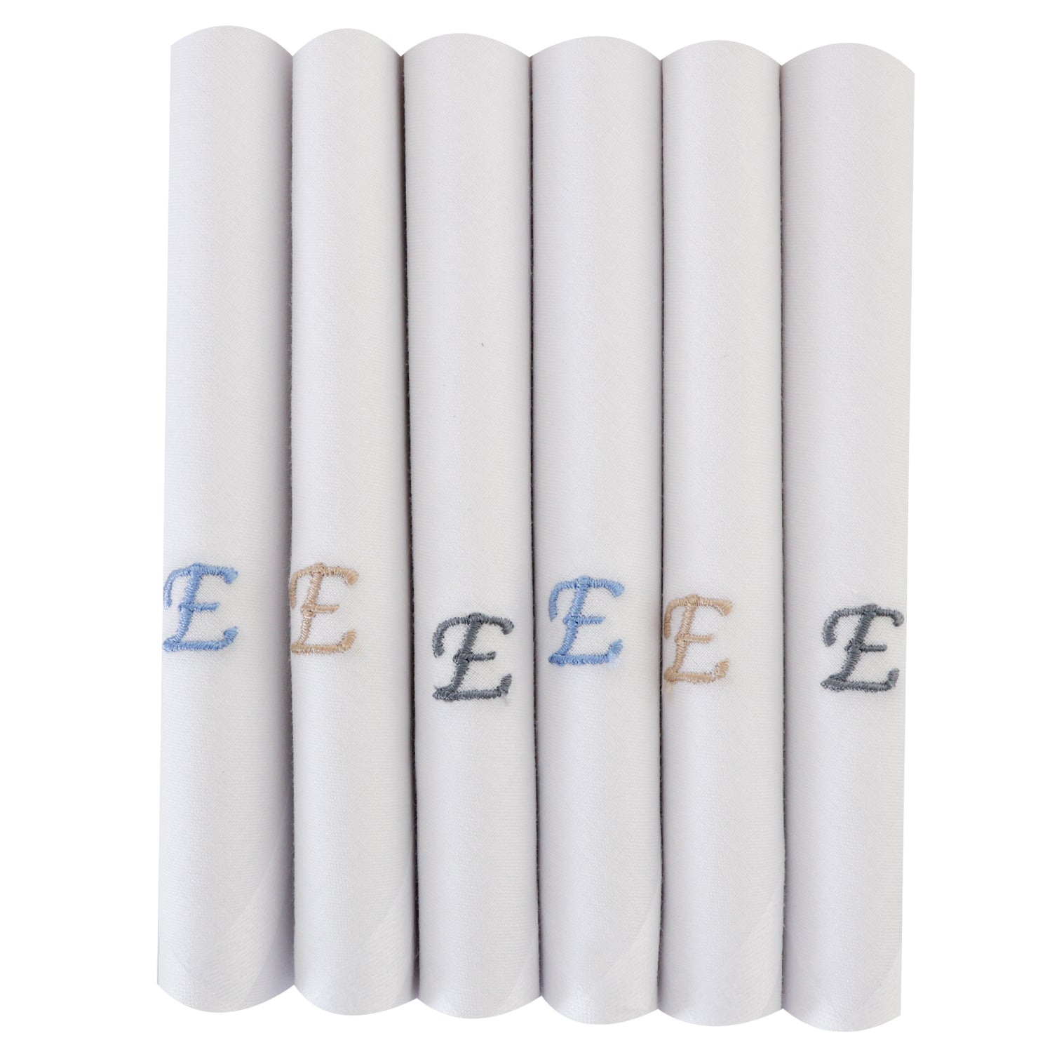 Men's White Cotton Handkerchief With Alphabet E Initial (Pack of 6)