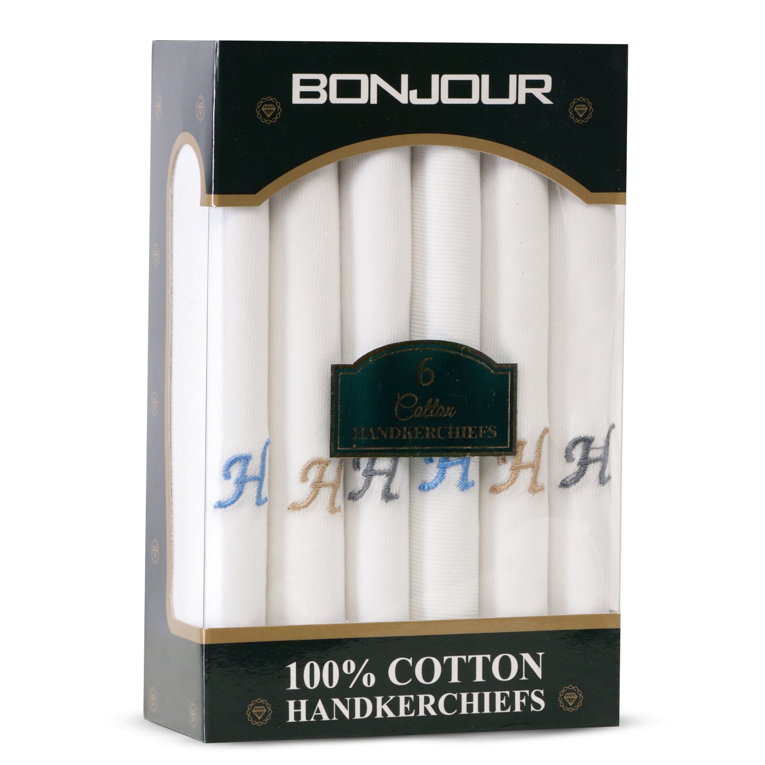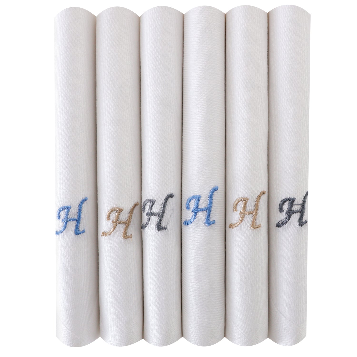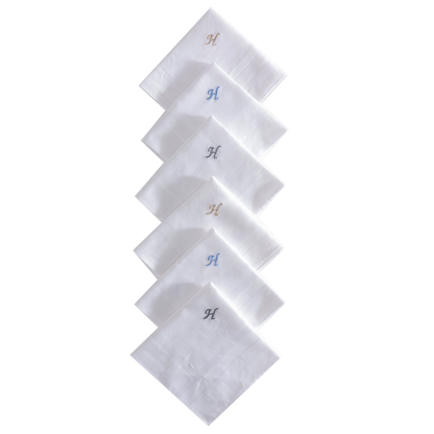 Men's White Cotton Handkerchief With Alphabet H Initial (Pack of 6)