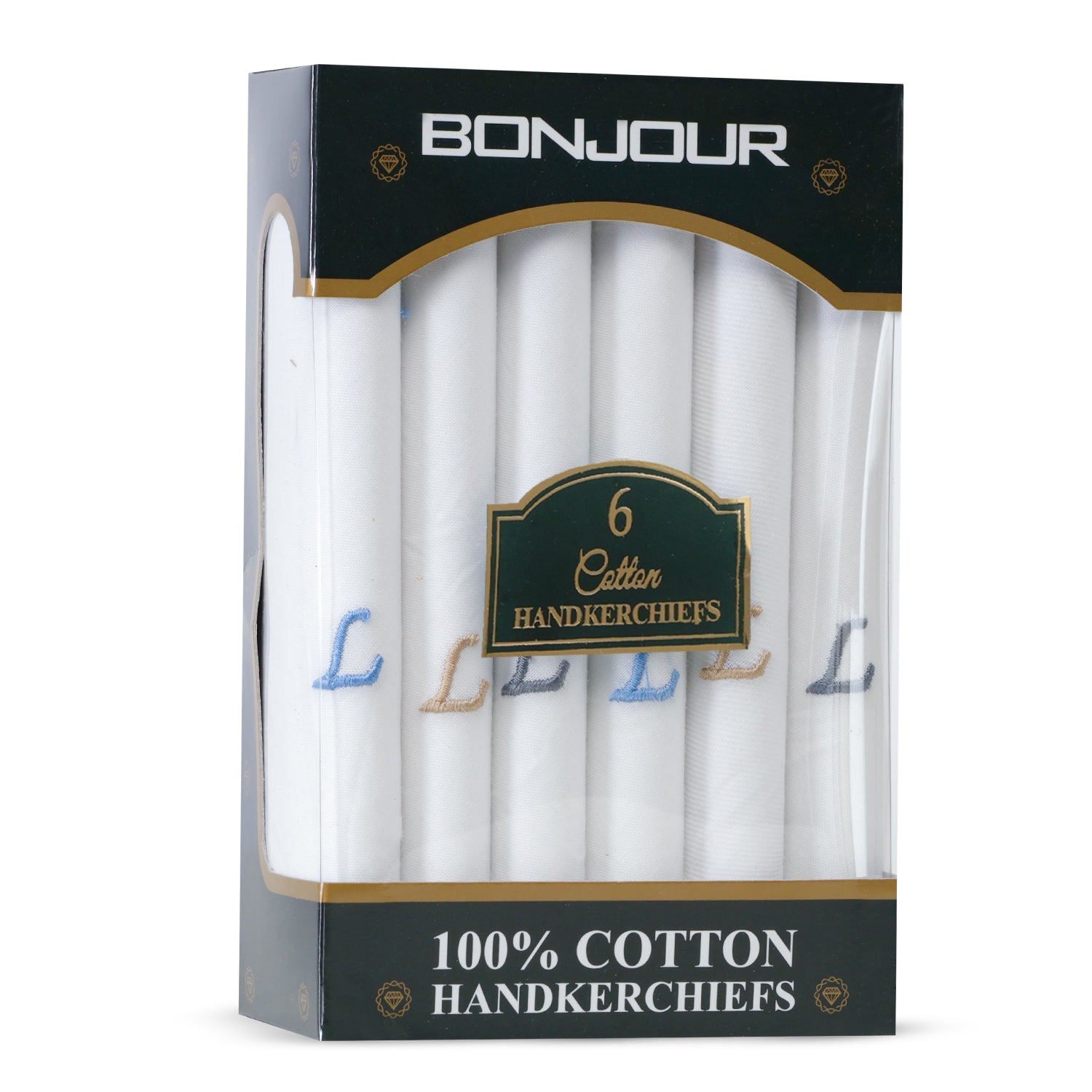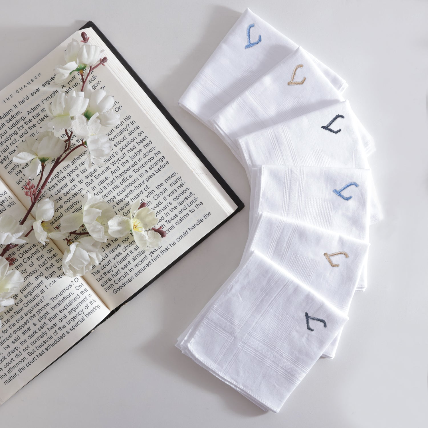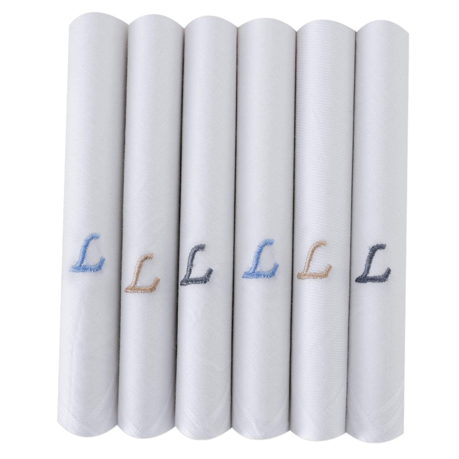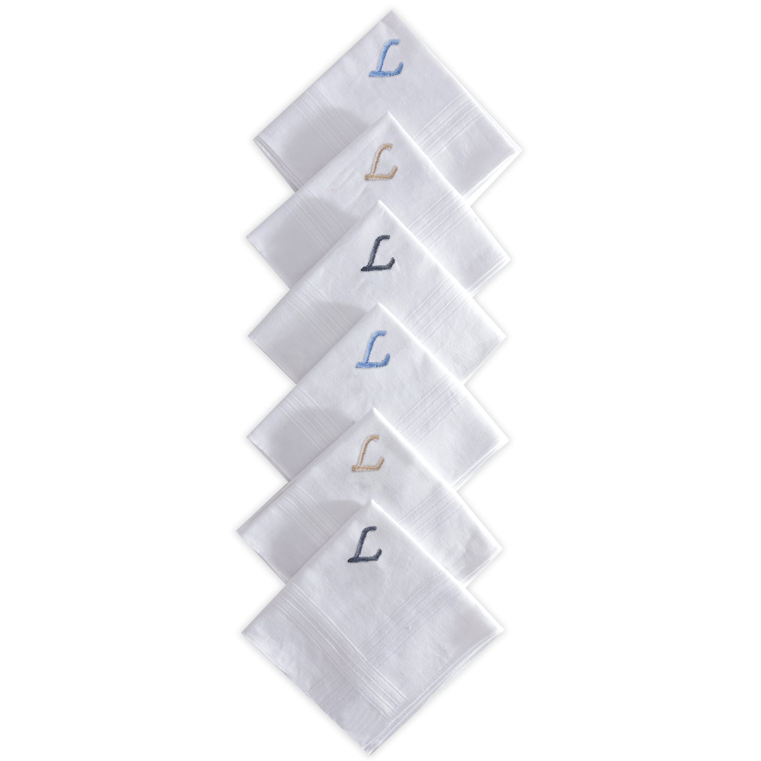 Men's White Cotton Handkerchief With Alphabet L Initial (Pack of 6)