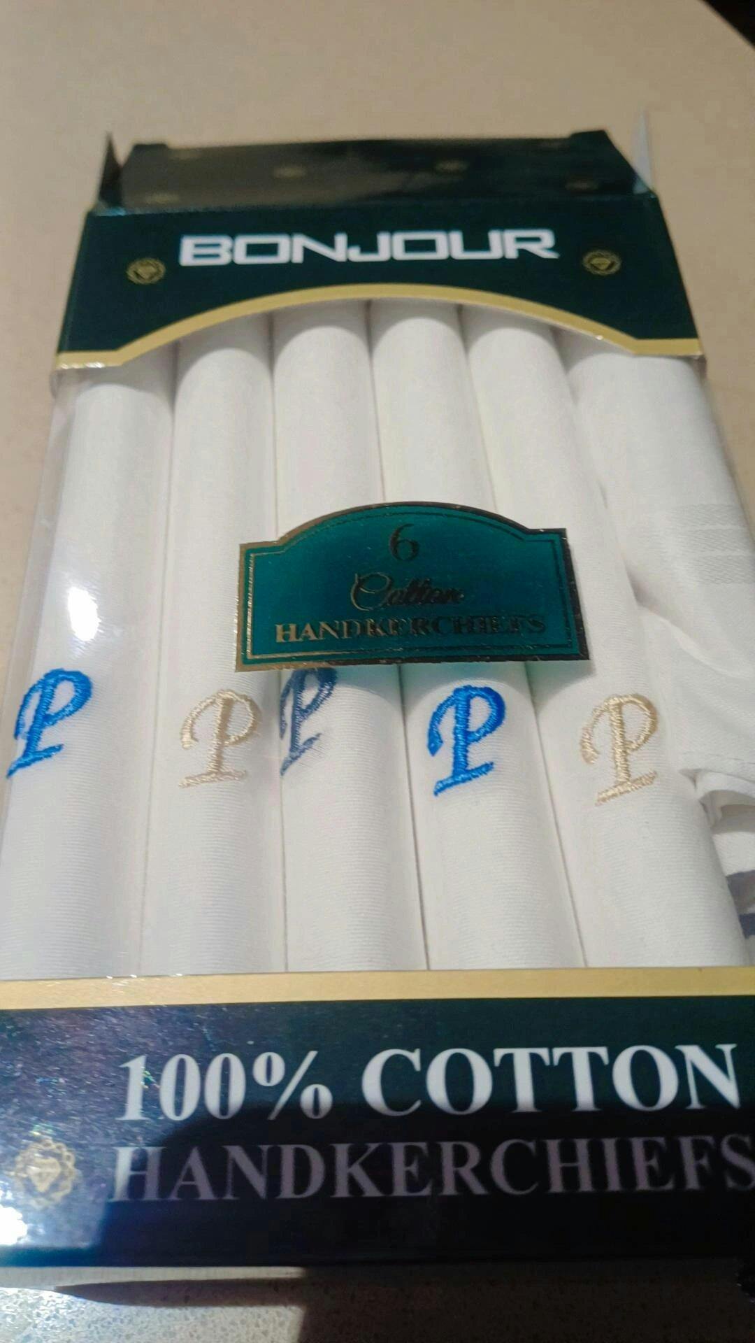 Get a handkerchief with your initials, Choose from A to Z, a true retro look! These white handkerchiefs are 100% cotton material and come in a single pack of 6 pieces.
