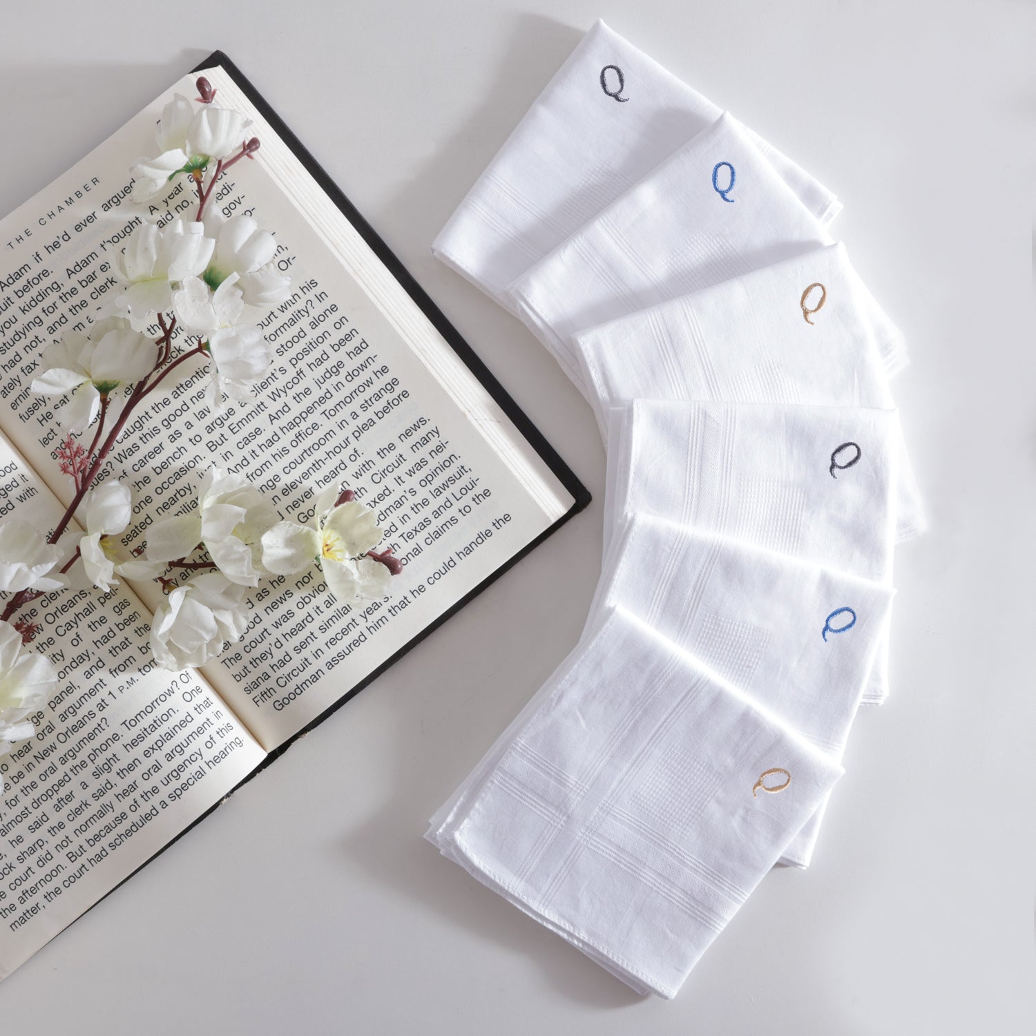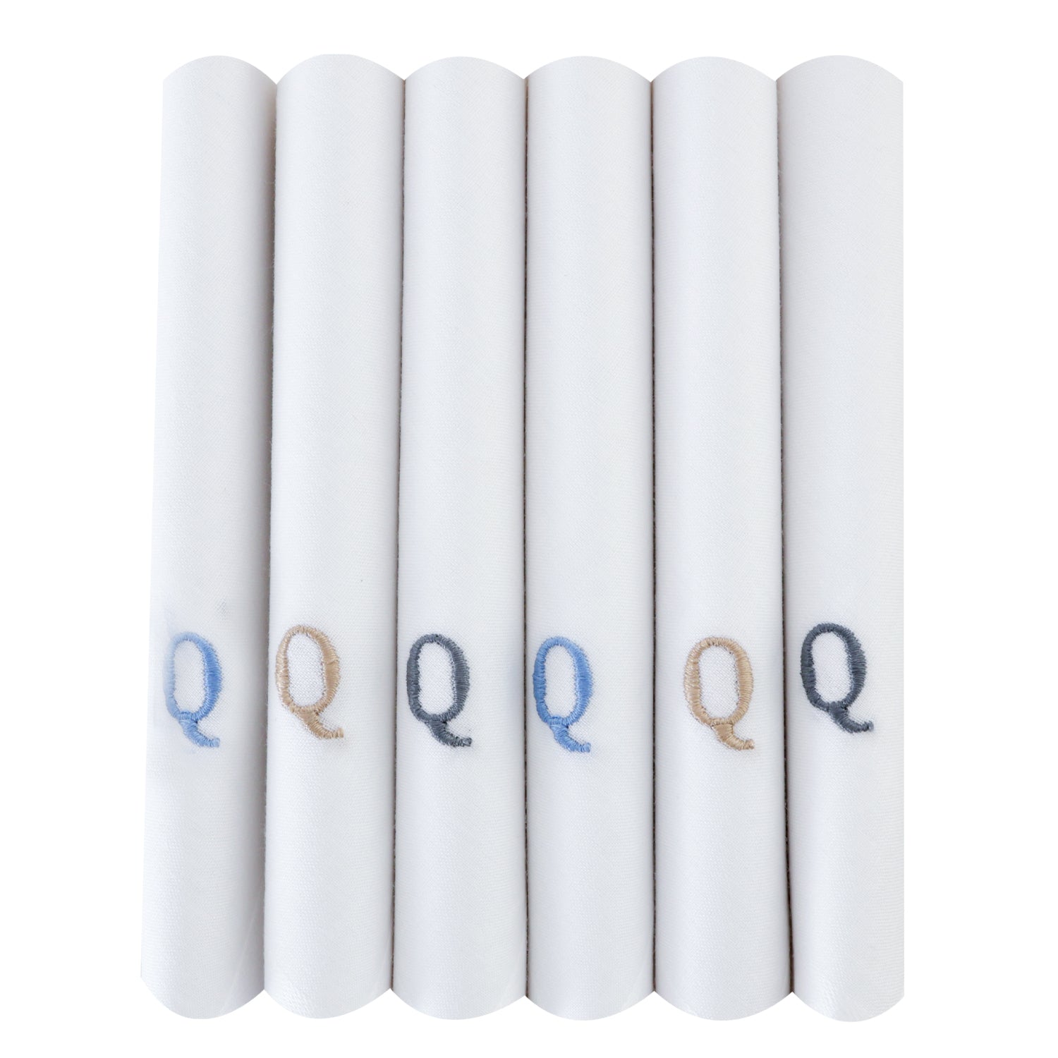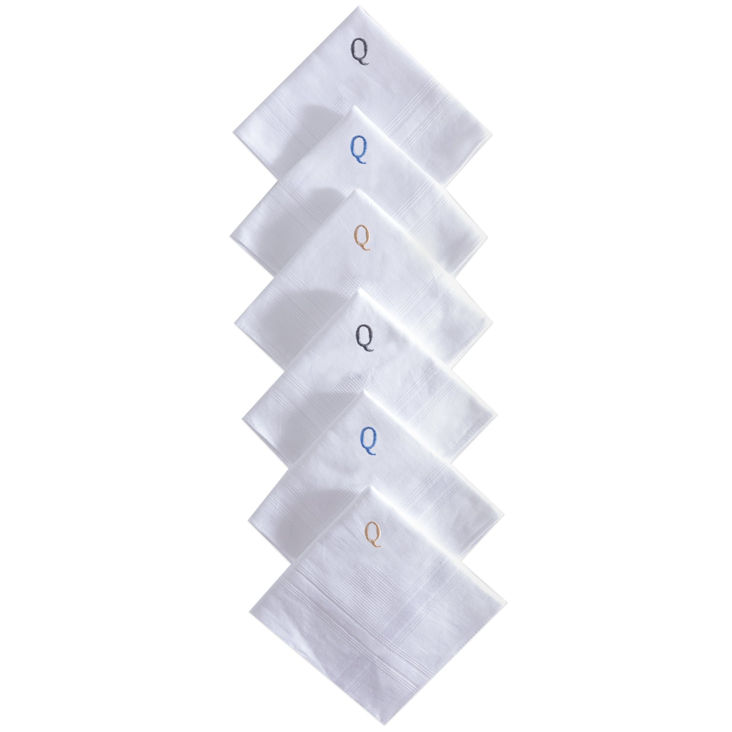 Men's White Cotton Handkerchief With Alphabet Q Initial (Pack of 6)