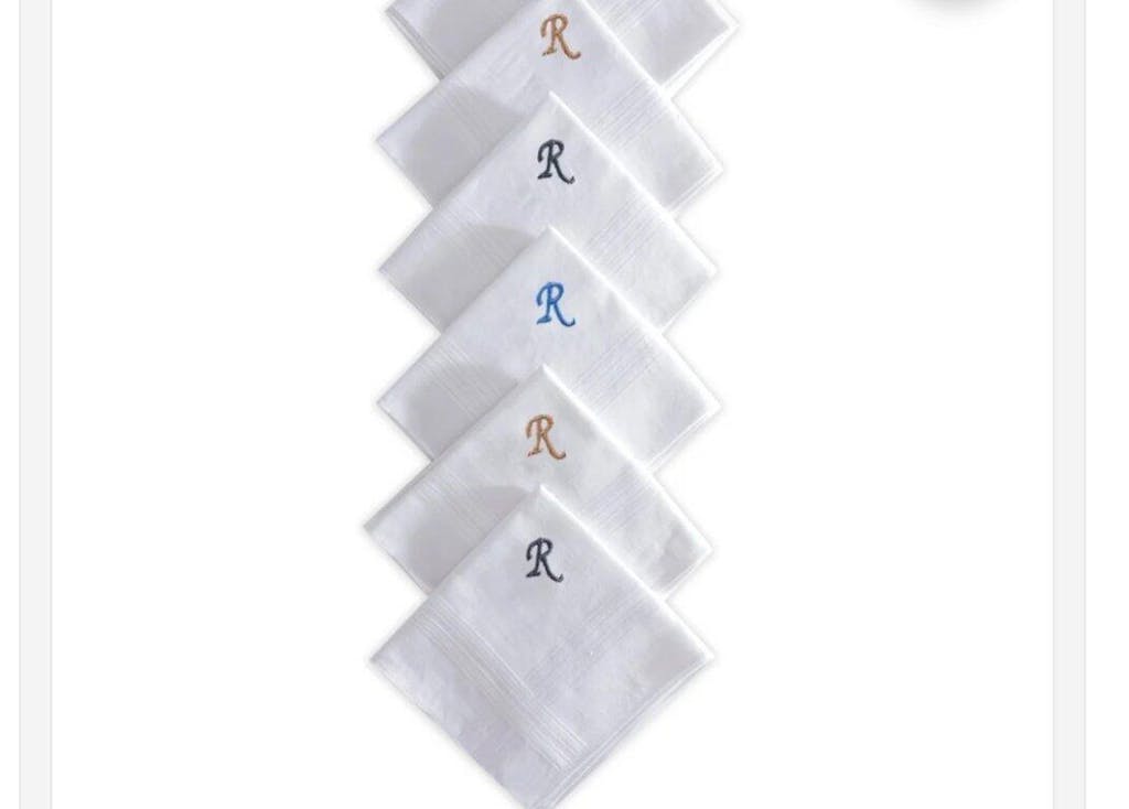 Get a handkerchief with your initials, Choose from A to Z, a true retro look! These white handkerchiefs are 100% cotton material and come in a single pack of 6 pieces.