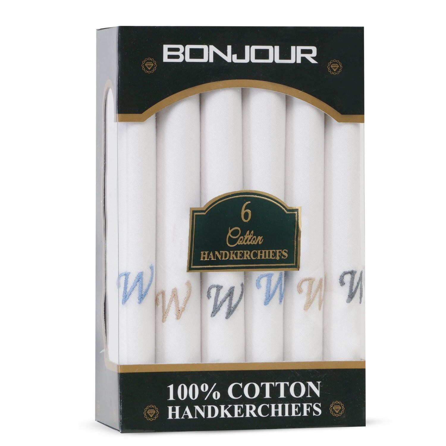 Get a handkerchief with your initials, Choose from A to Z, a true retro look! These white handkerchiefs are 100% cotton material and come in a single pack of 6 pieces.