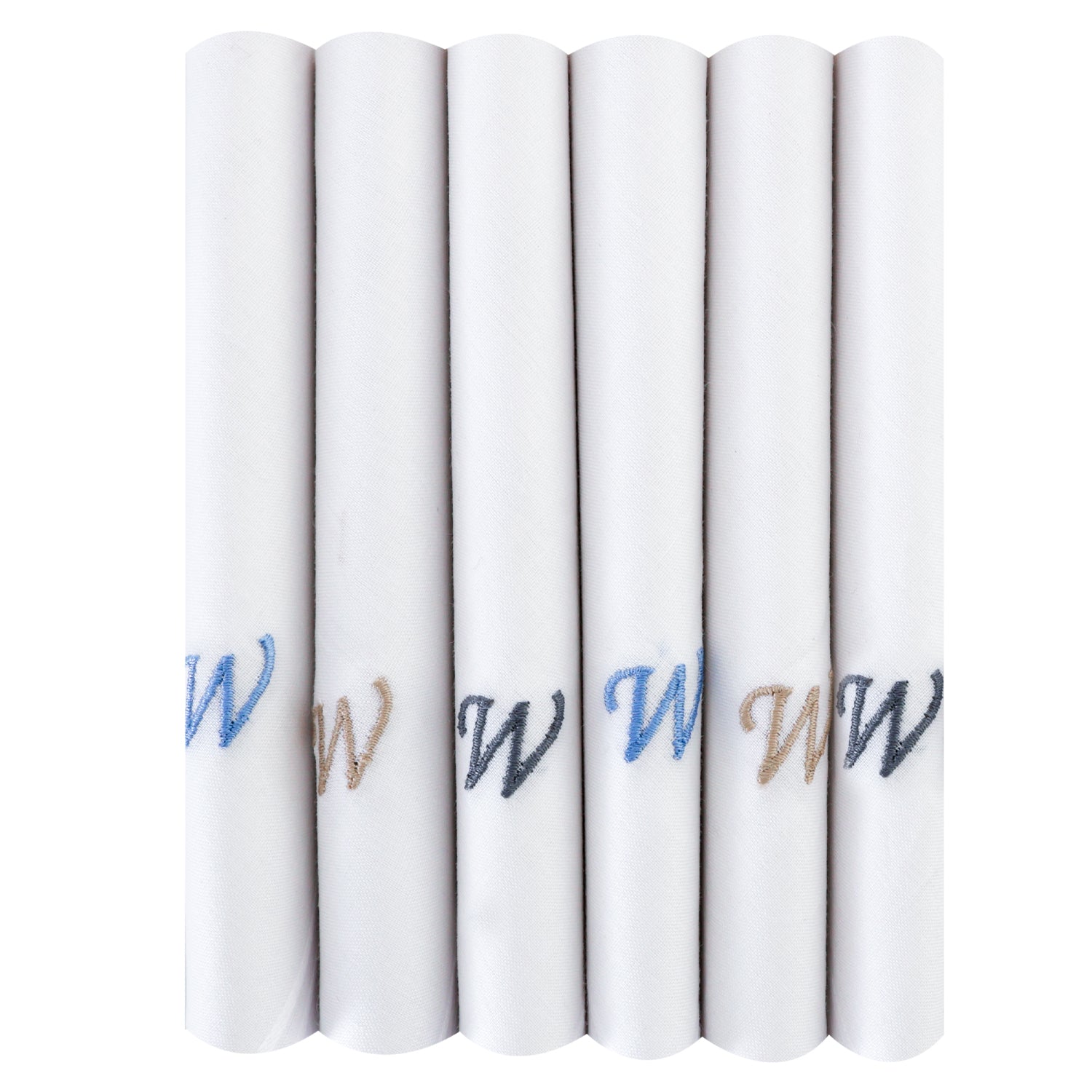 Men's White Cotton Handkerchief With Alphabet W Initial (Pack of 6)