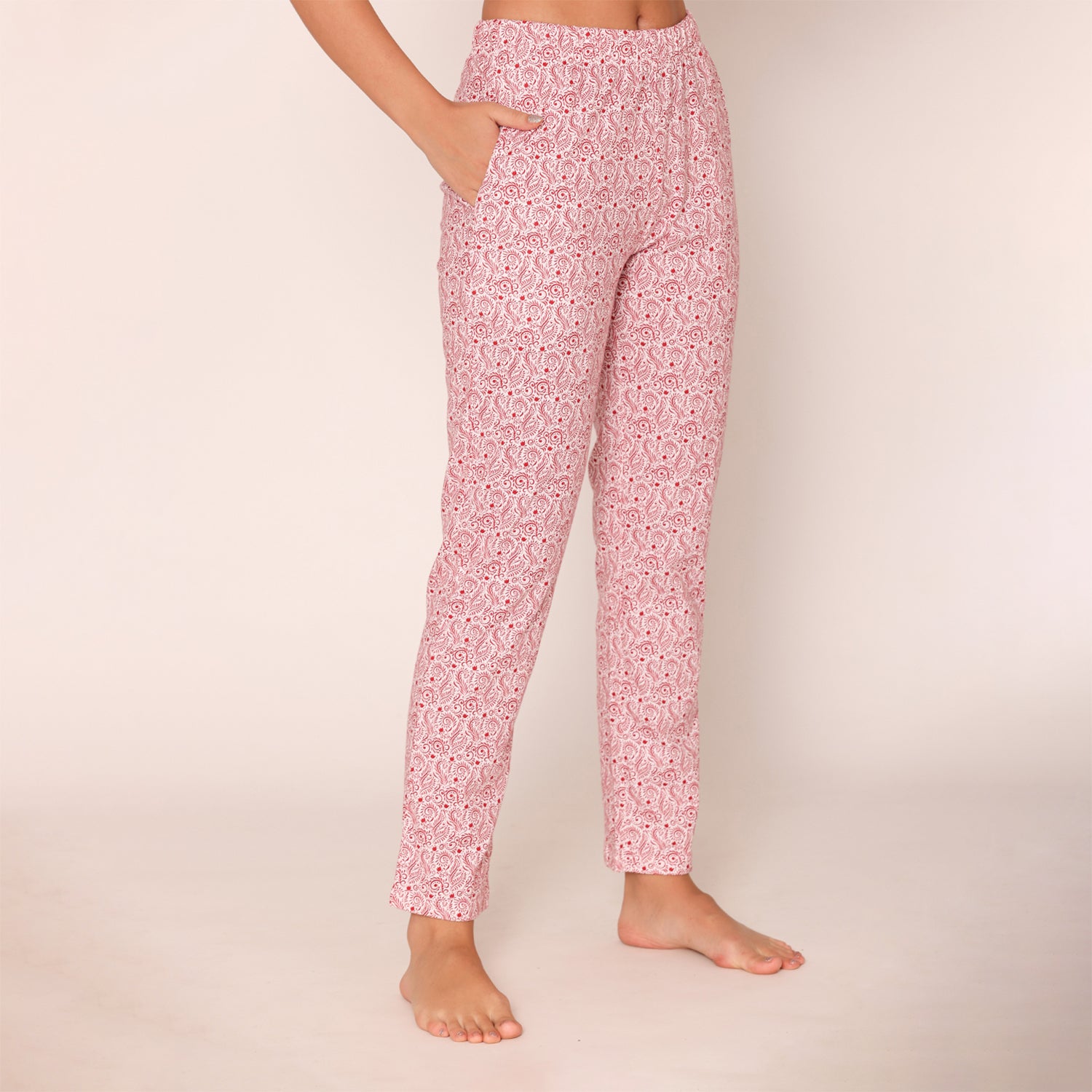 Get ready for a sleepover party or just want to take a nap, Slip into this knitted lower for ladies to make sure your comfort never suffers. This printed Cotton Pajama is stylishly comfortable and soft against your skin. Available with floral prints and both side pockets, this cotton nightwear's perfect stretchability keeps you happy and relaxed with a relaxed fit and experiences comfort like never before.