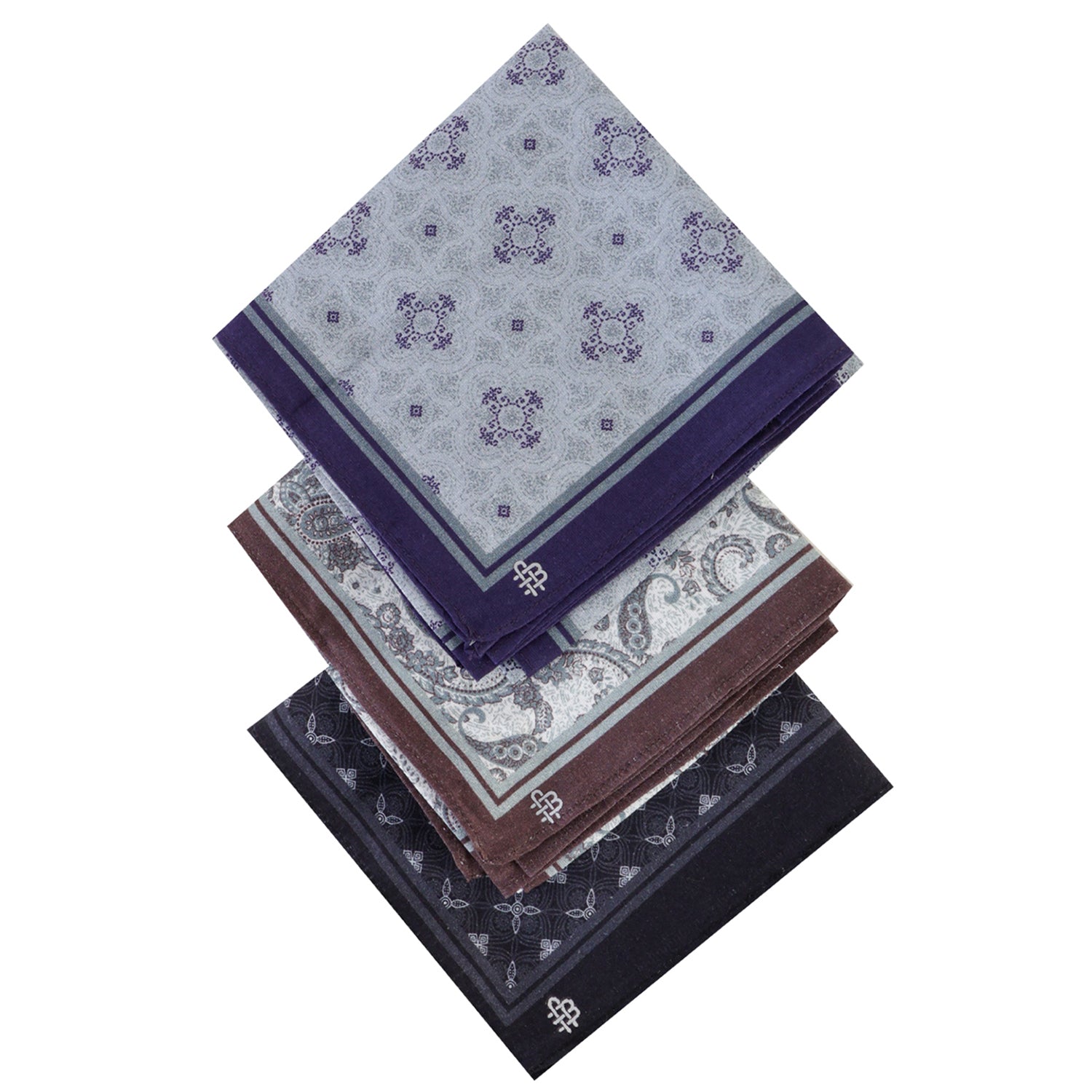 Silcora Men’s Cotton Handkerchiefs Pack of 3 (Color & Print May Vary)