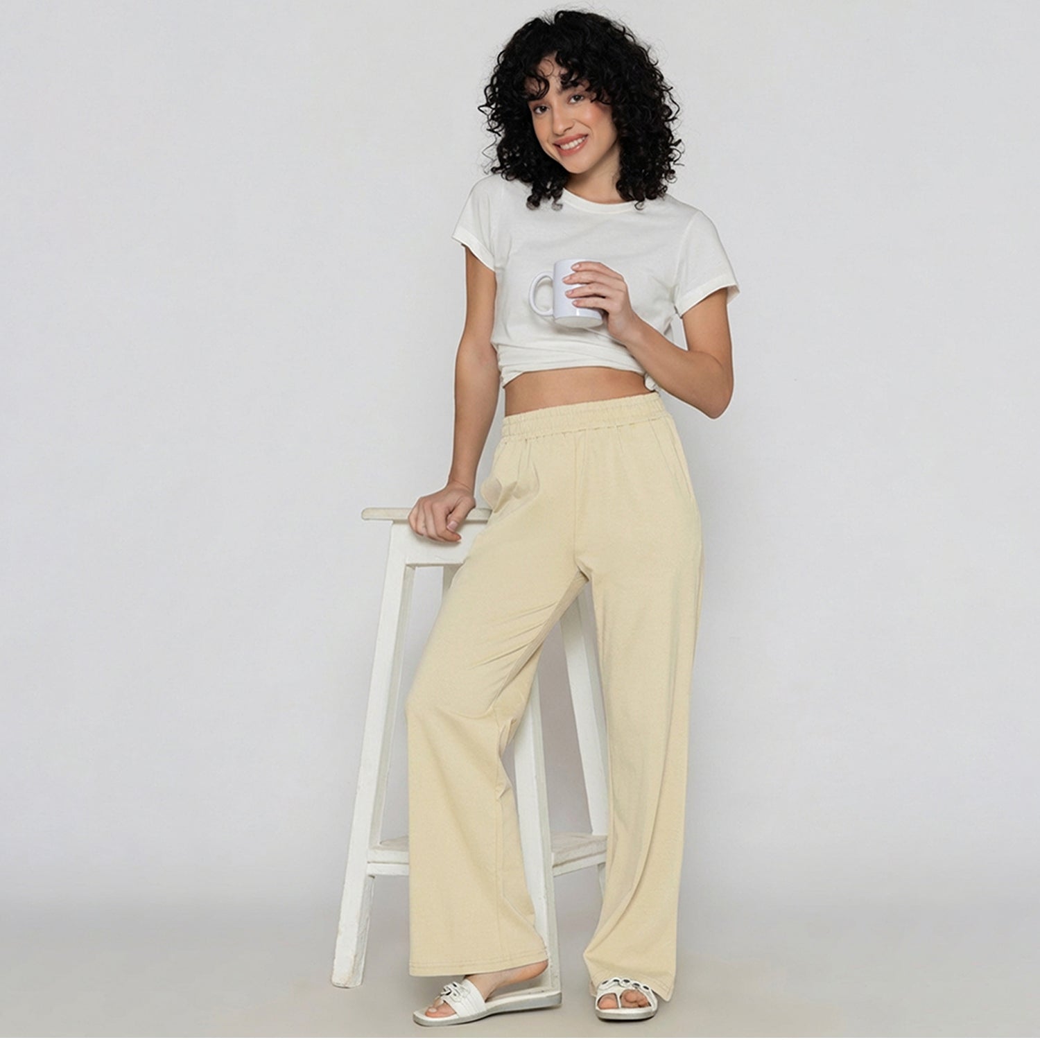Women Flared Pants (Butter Milk)