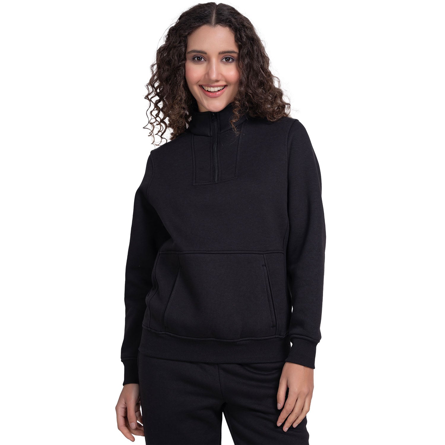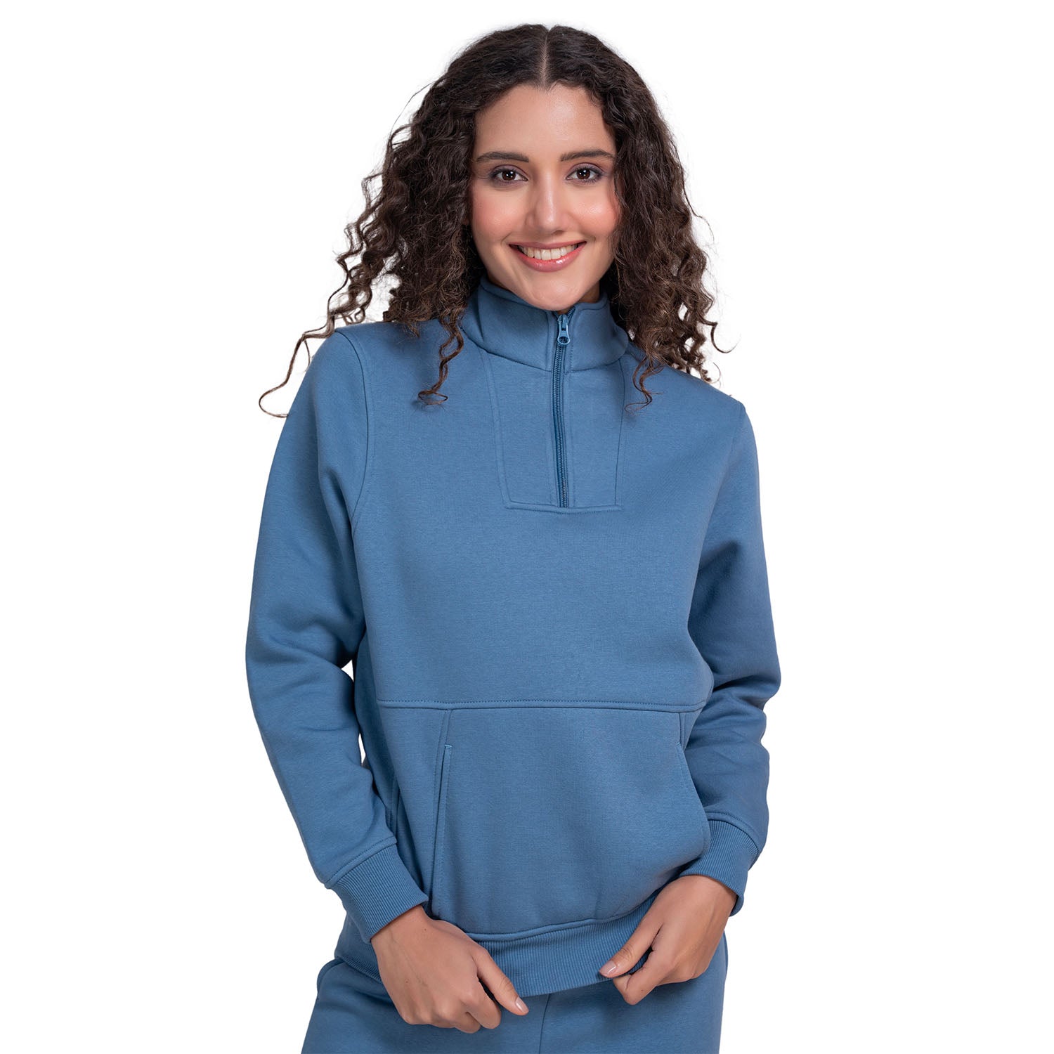 Bonjour quarter-zip sweatshirt is your ultimate go-to for a stylish and cozy look. Designed with a chic high neck and a smooth half zipper, it’s made from a soft cotton blend for supreme comfort. The spacious kangaroo pocket is perfect for on-the-go storage, while ribbed trims add a tailored finish. Ideal for everything from weekend lounging to casual outings, this sweatshirt keeps you comfortable without compromising on style.