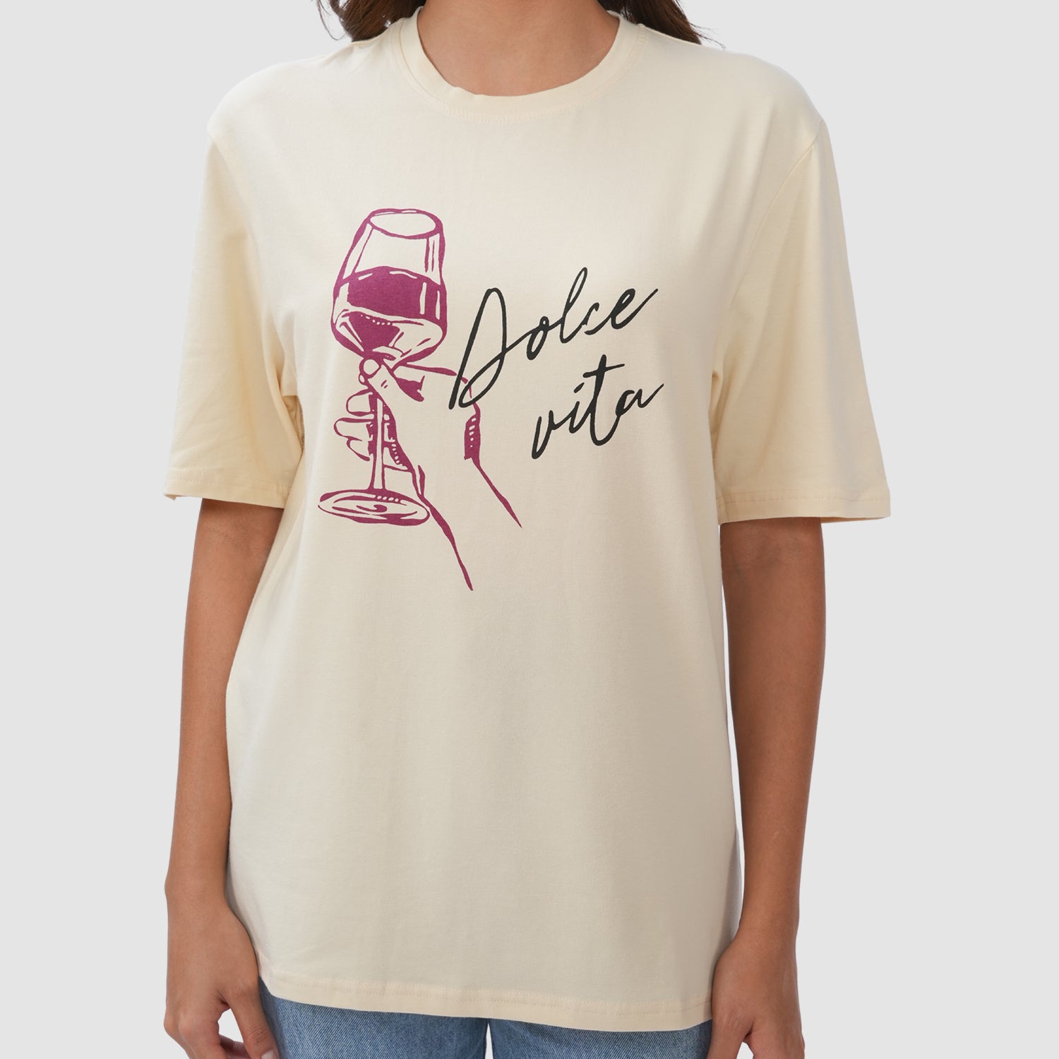 Women Knitted Fabric Regular Fit Half Sleeve Tee/T-shirt - Butter Milk