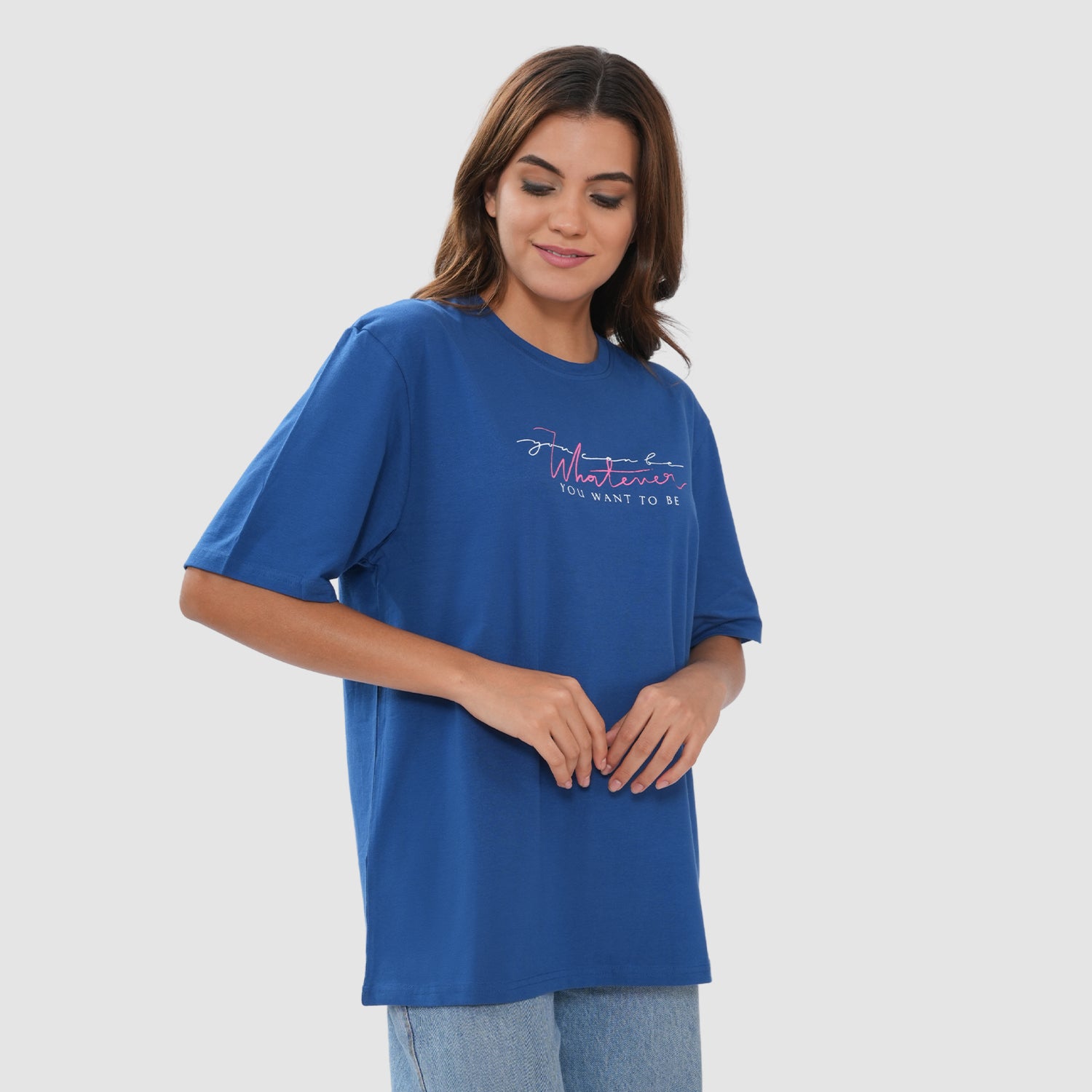 Women-Knitted-Fabric-Regular-Fit-Half-Sleeve-Tee/T-shirt - Strong Blue