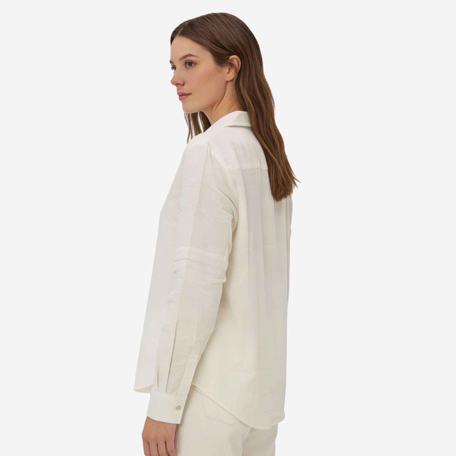 Crafted from premium linen, this Bonjour shirt delivers exceptional breathability and a feather-light feel ideal for India's warm climate. The understated ivory tone and streamlined silhouette create a versatile foundation for your wardrobe—equally at home in professional settings or weekend casual wear. Its relaxed cut accommodates natural movement while the full-length sleeves and button-front closure maintain a polished aesthetic. Pair effortlessly with tailored trousers, denim, or traditional separates for an elevated yet approachable look that transitions seamlessly from day to evening.