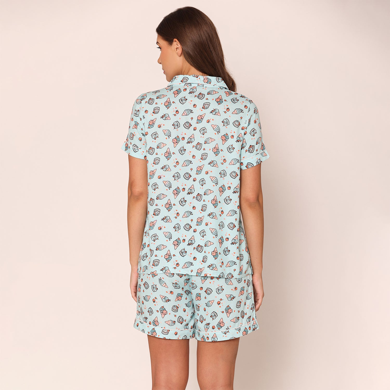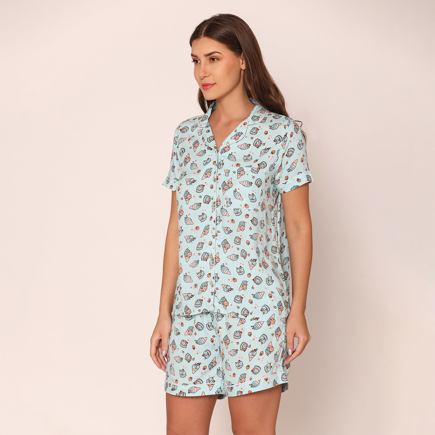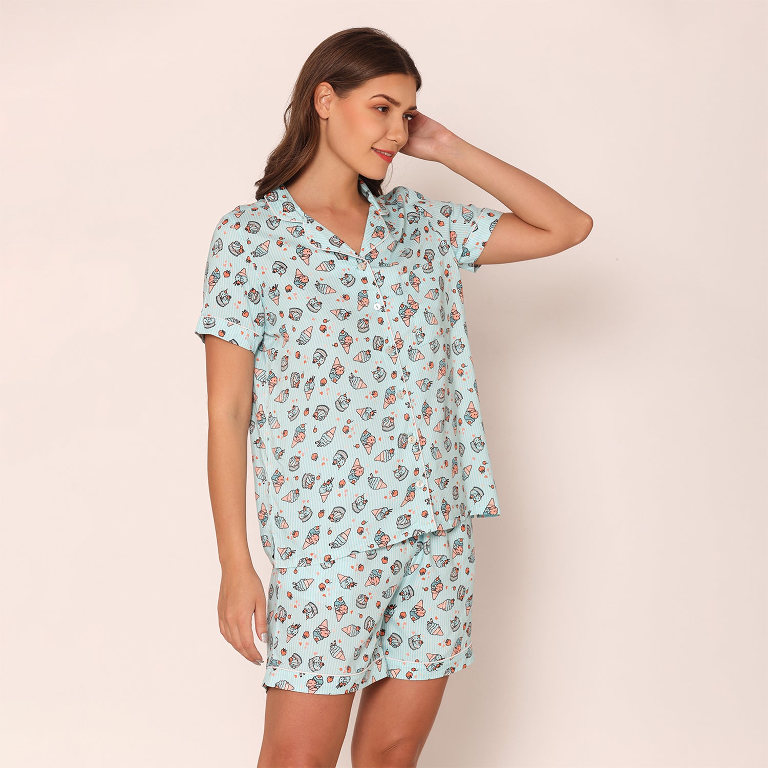 • Charming Prints: Adorned with delightful prints that add a playful and stylish touch to the night suit set.