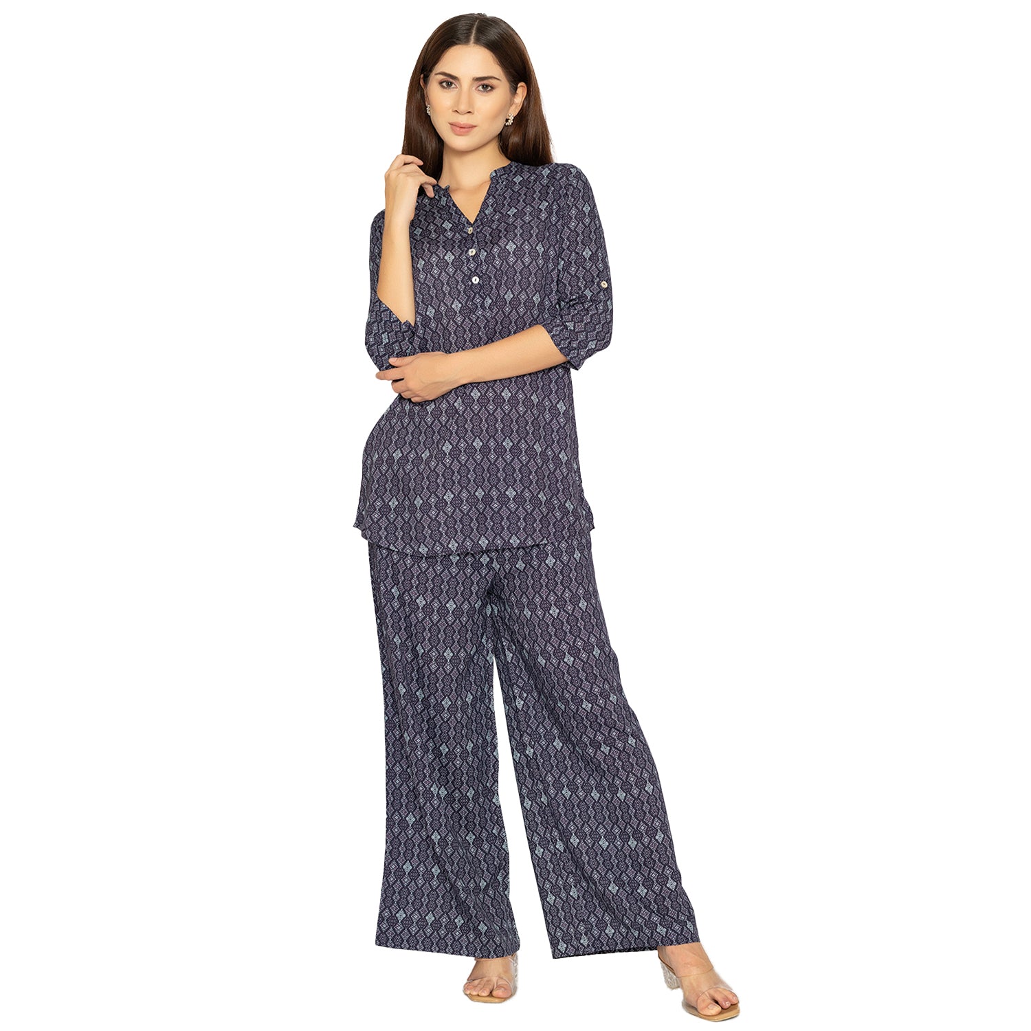 Add effortless comfort to your everyday outfits with these indigo printed palazzo pants. Designed with a geometric print and wide-leg silhouette, they offer a relaxed fit that's perfect for casual wear, travel, or pairing with kurtis and tunics. A stylish yet functional wardrobe essential.